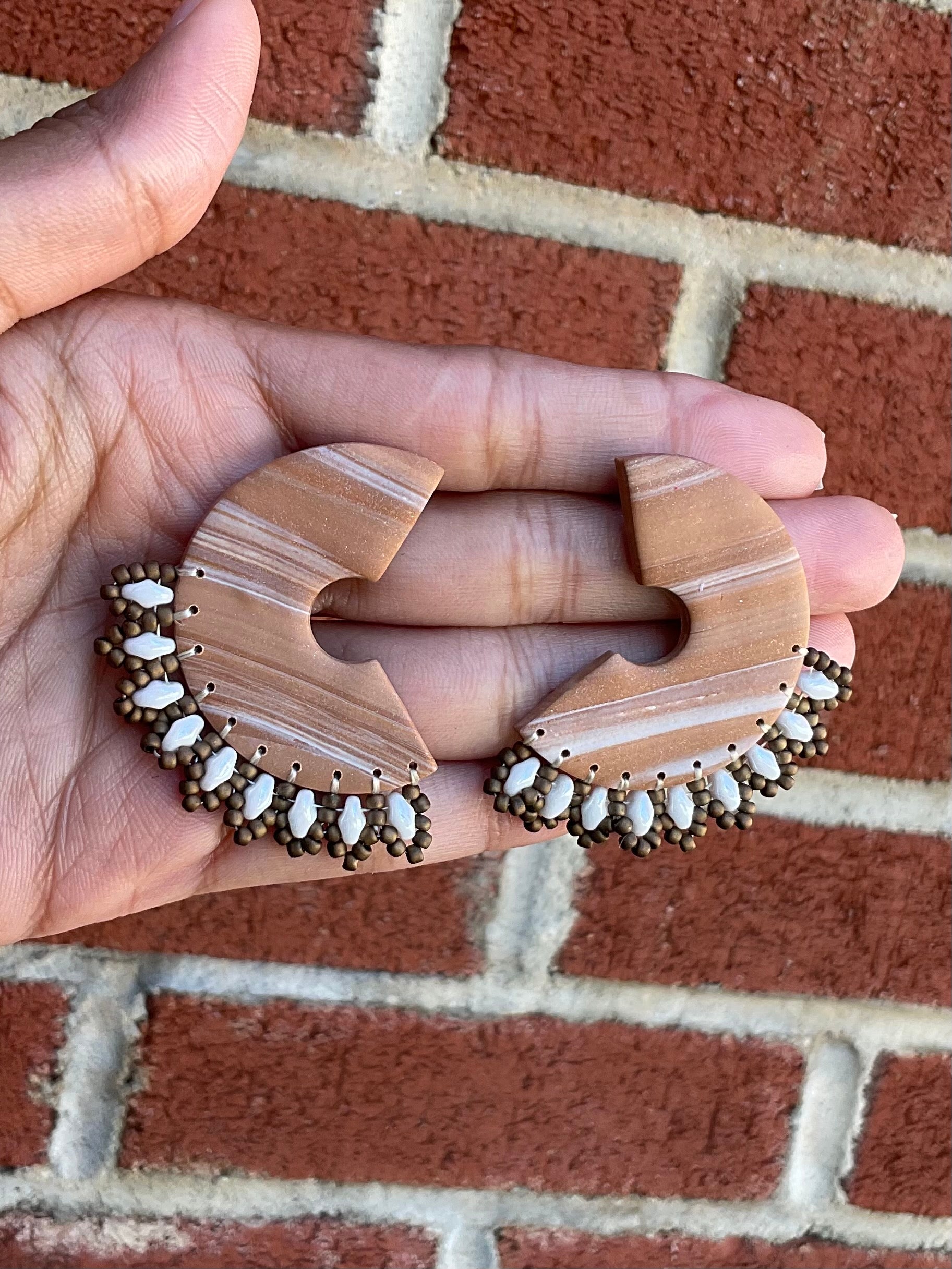 - Available in pierced studs or clip-on. Studs are baked onto the clay with liquid clay for durability. No resin or glue!