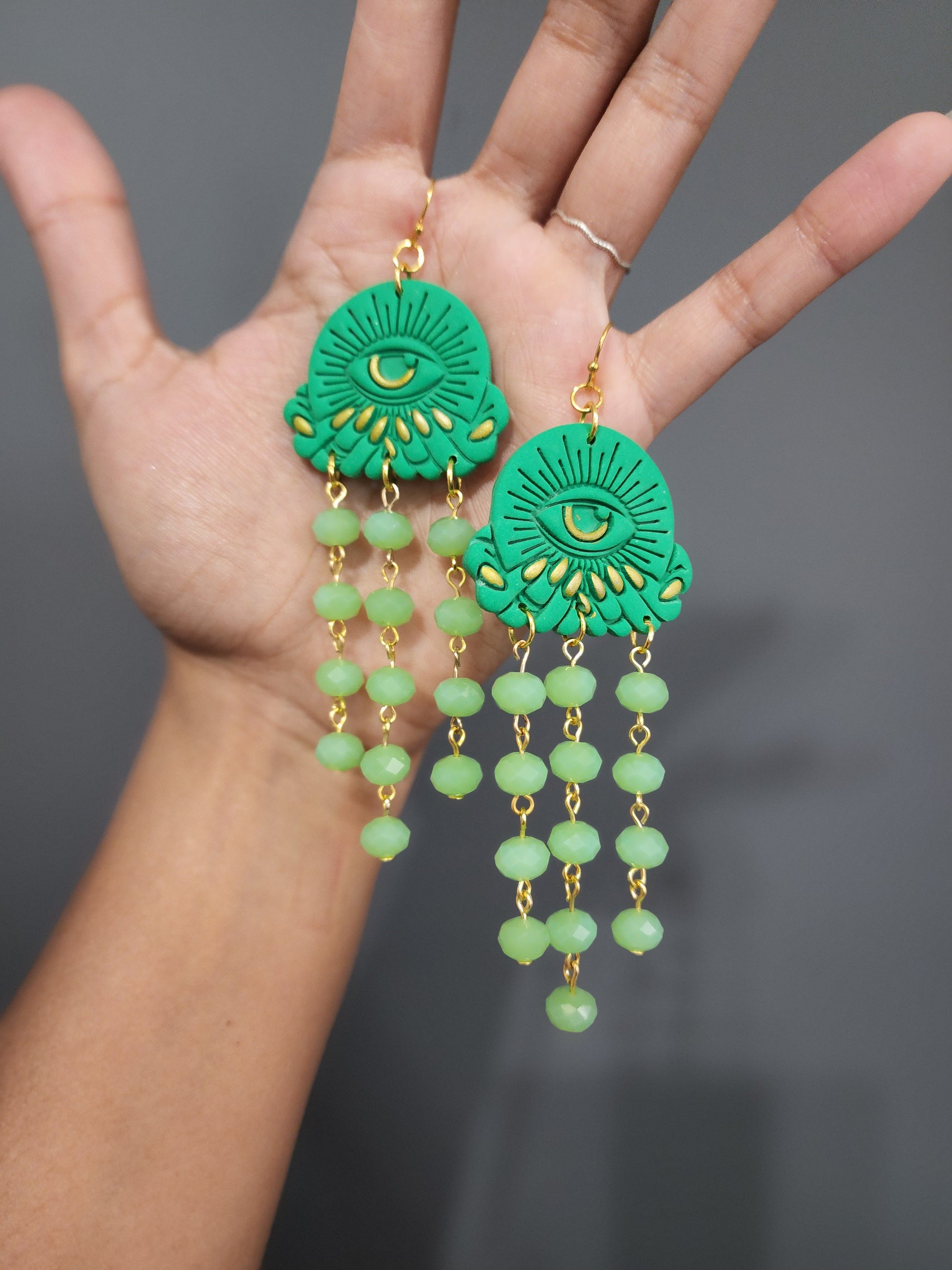 - 100% handmade with polymer clay which is hand-kneaded, molded, mixed, shaped, cut, sanded, drilled, and assembled by hand.