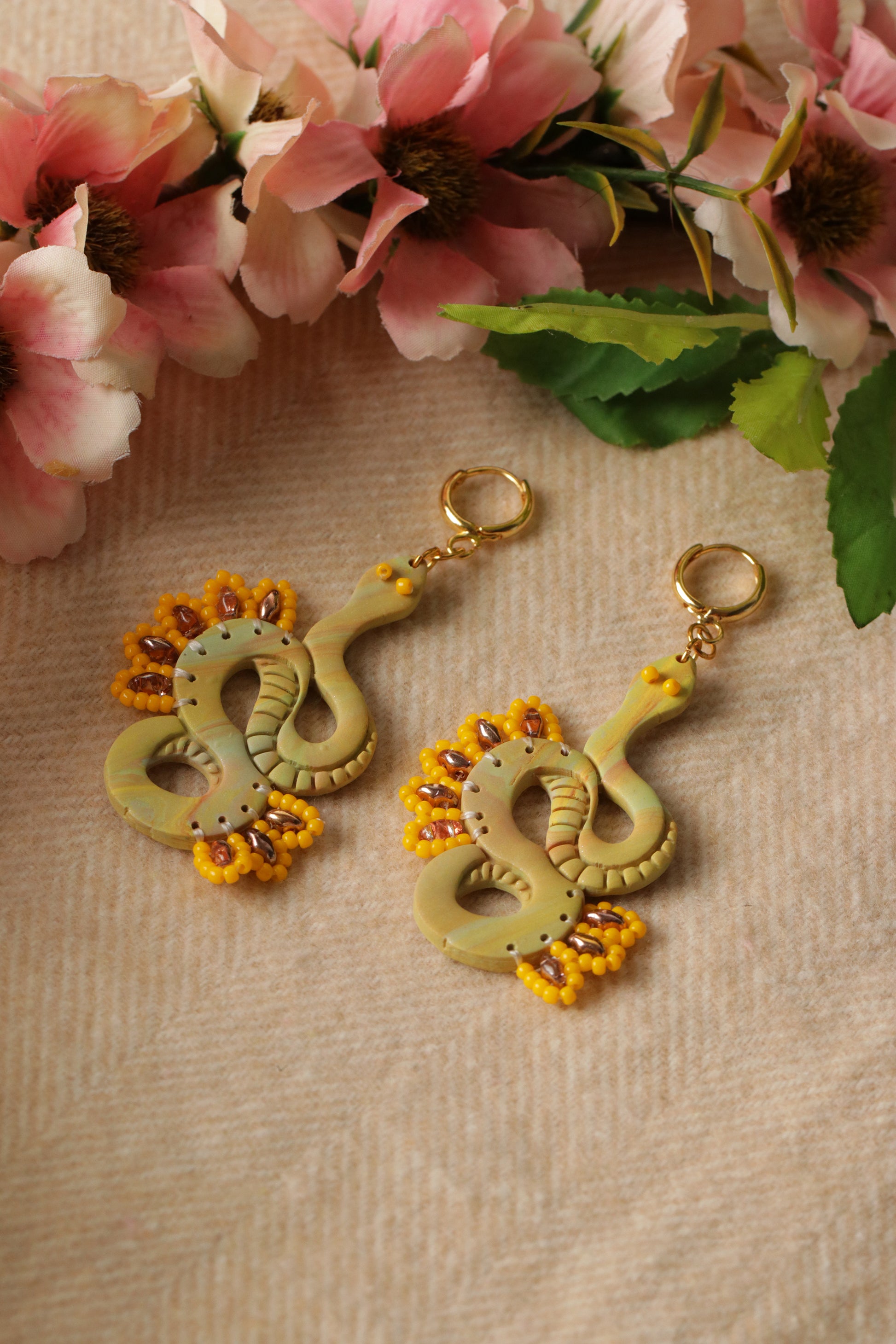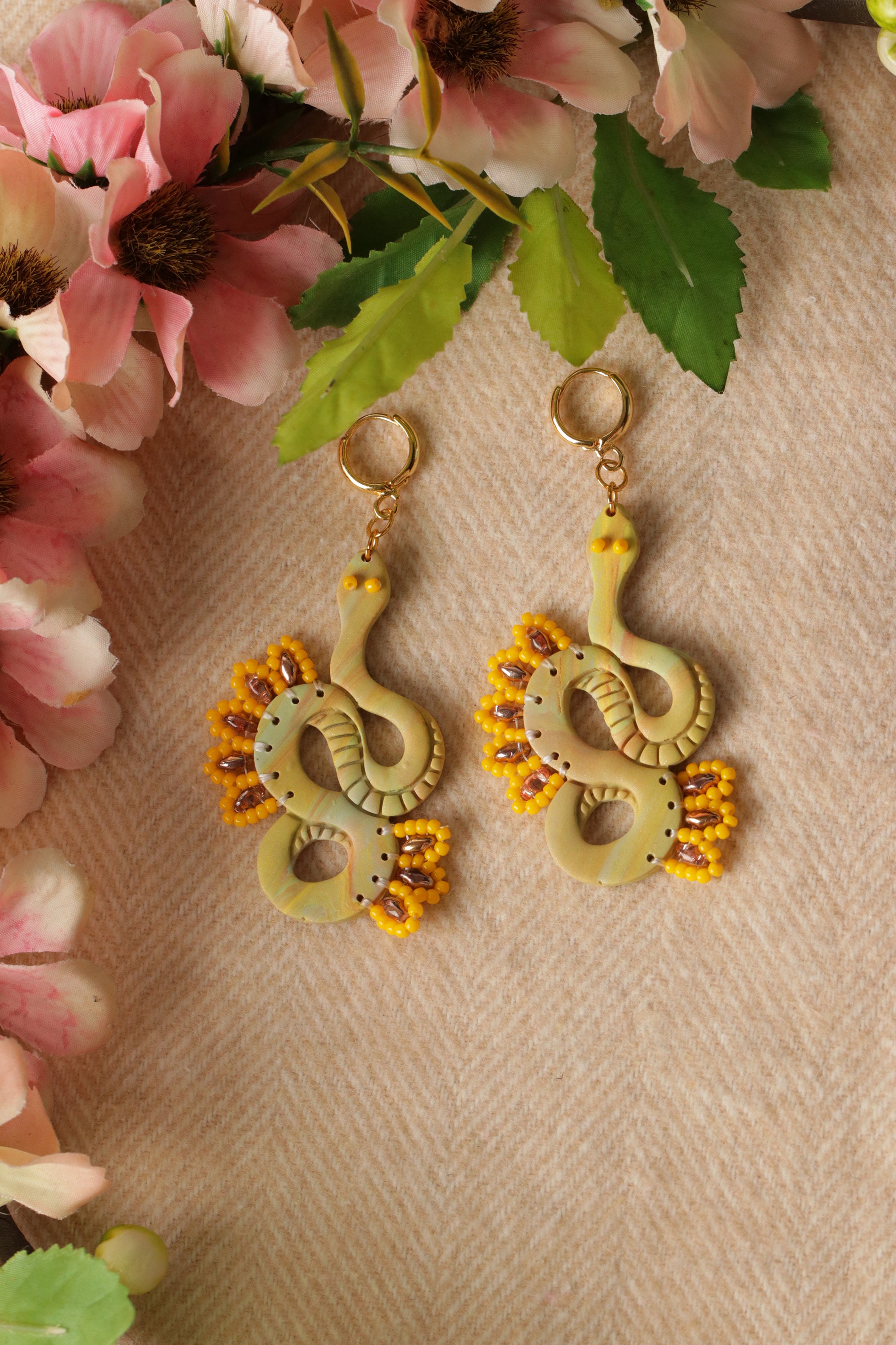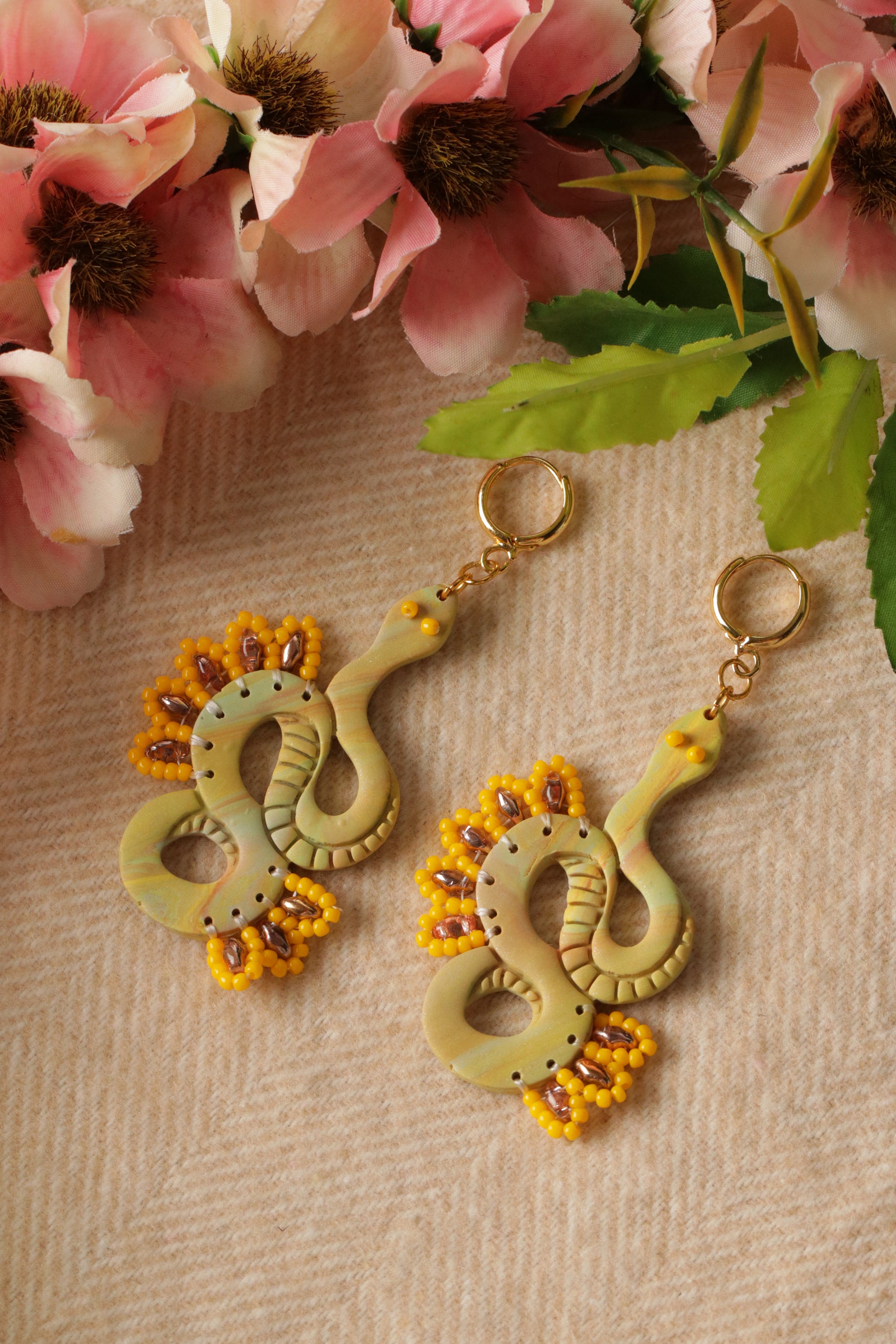 - 100% handmade with polymer clay which is hand-kneaded, molded, mixed, shaped, cut, sanded, drilled, and assembled by hand.
