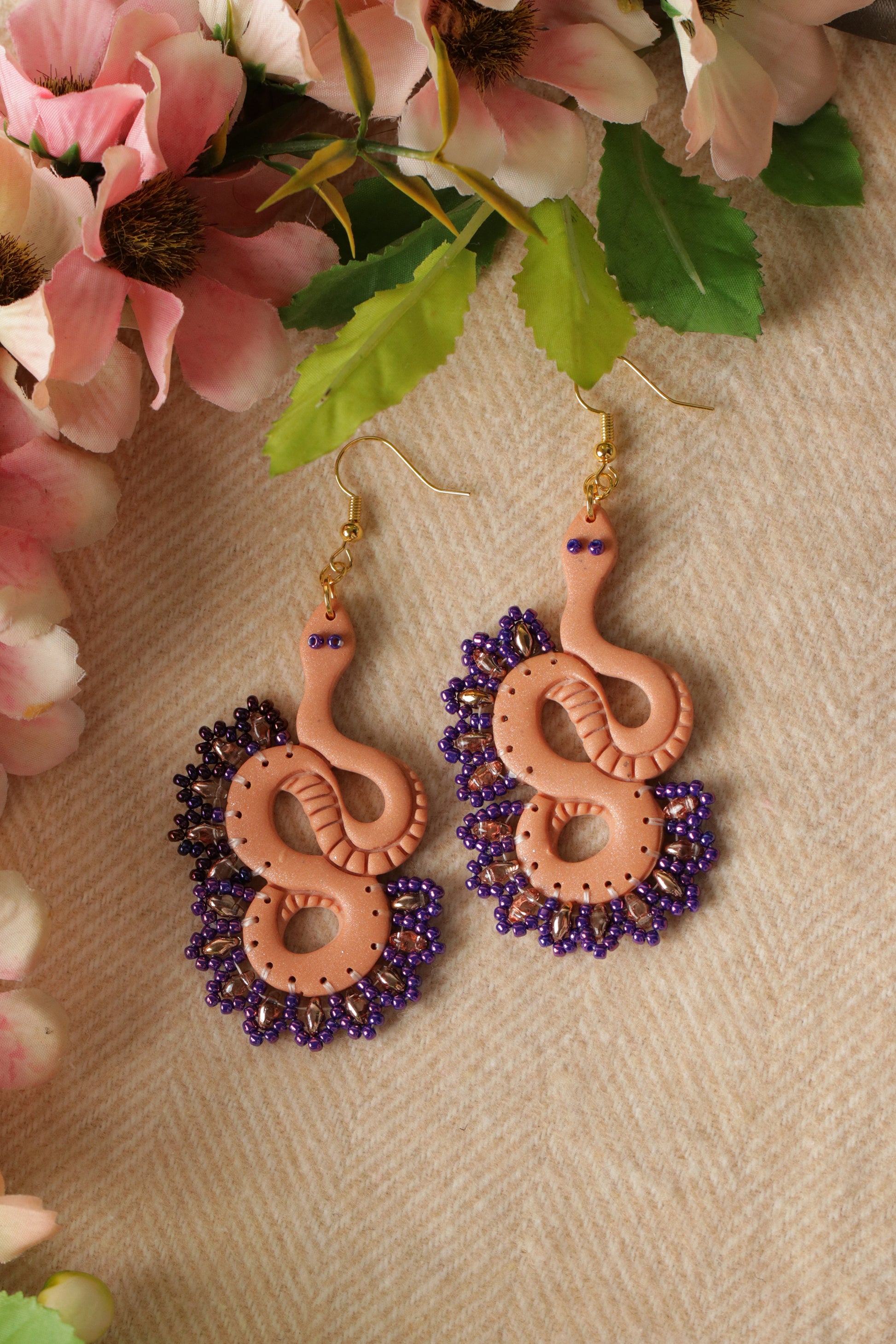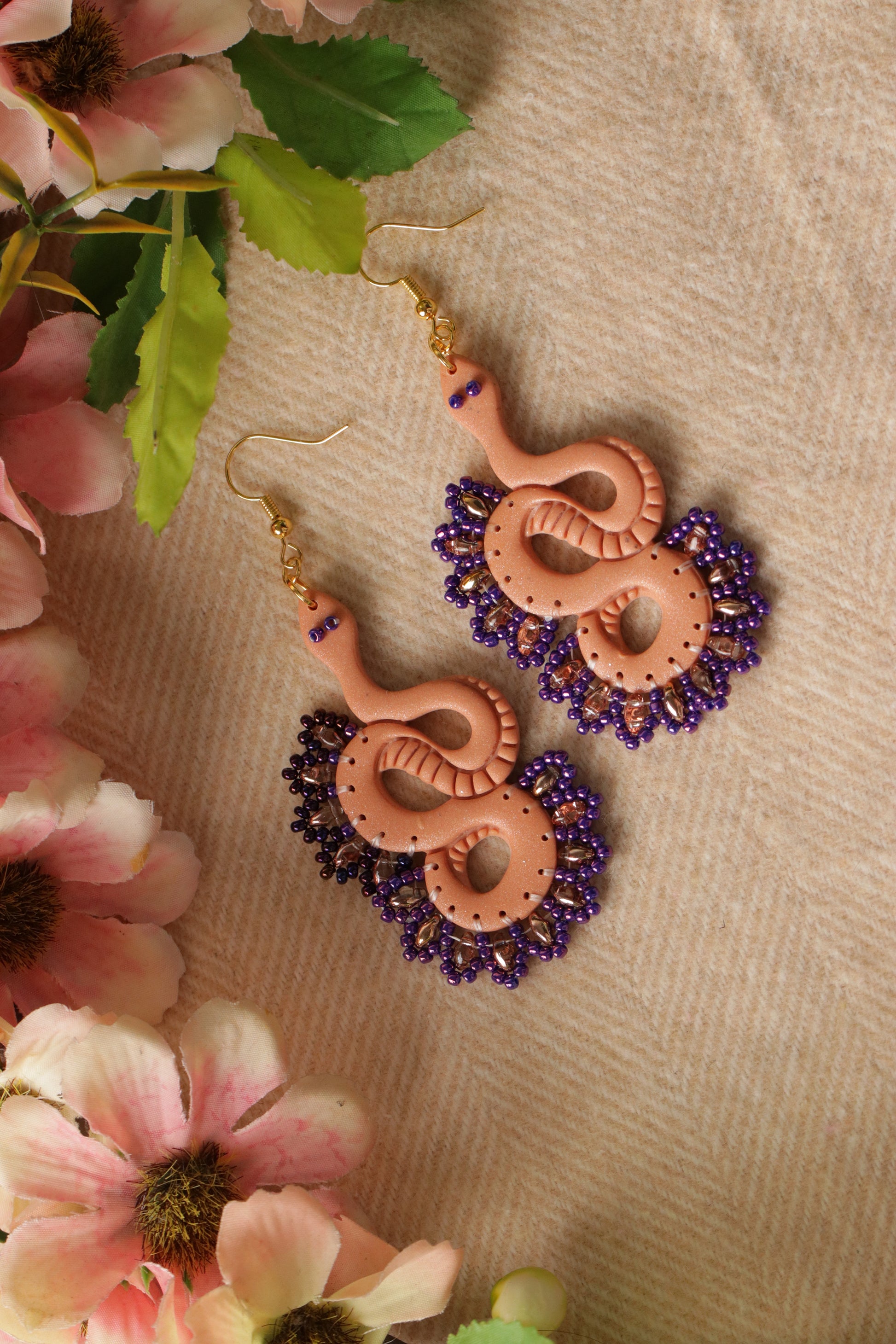 - 100% handmade with polymer clay which is hand-kneaded, molded, mixed, shaped, cut, sanded, drilled, and assembled by hand.
