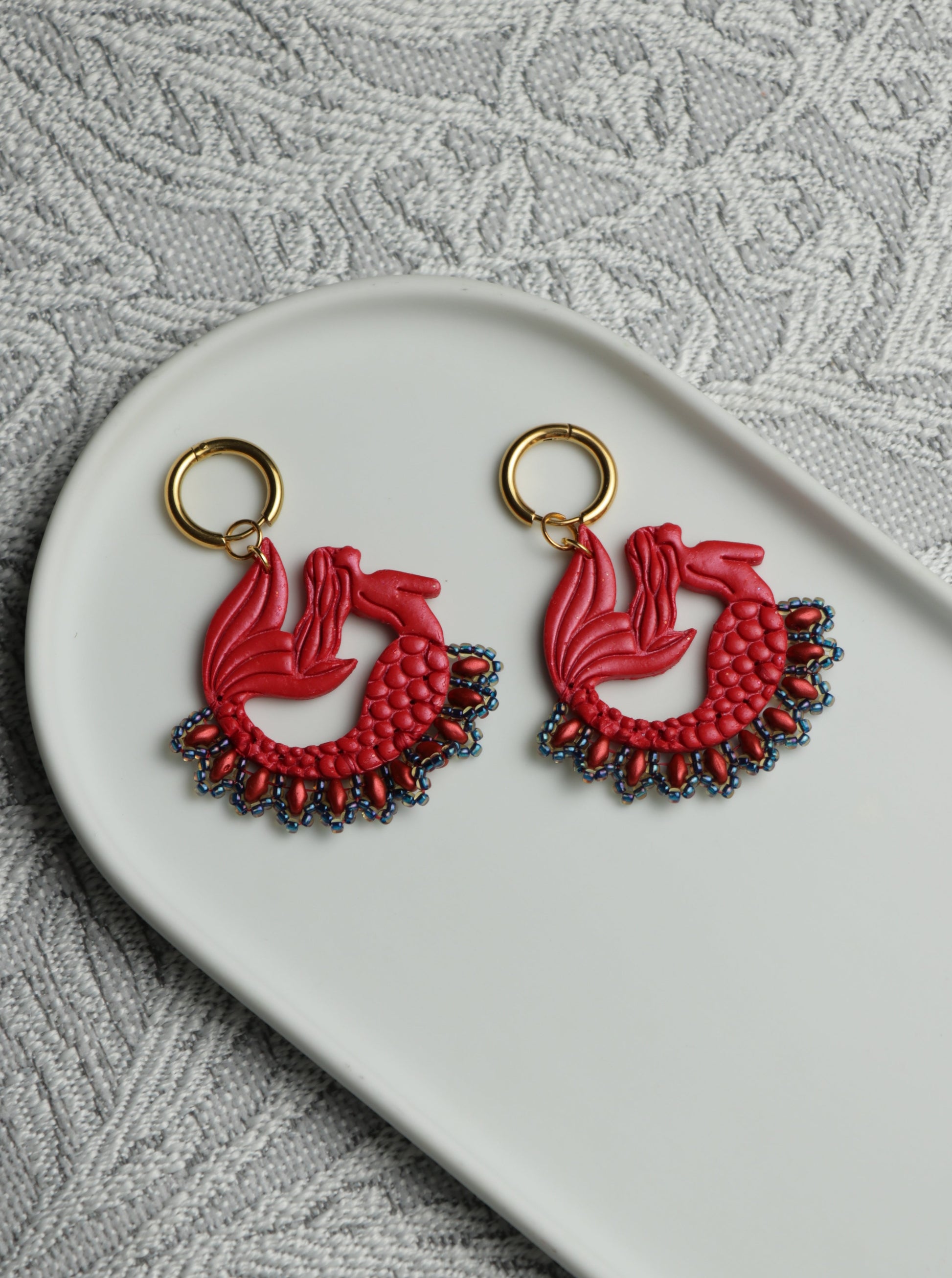 Made with polymer clay and hand-beaded edges.