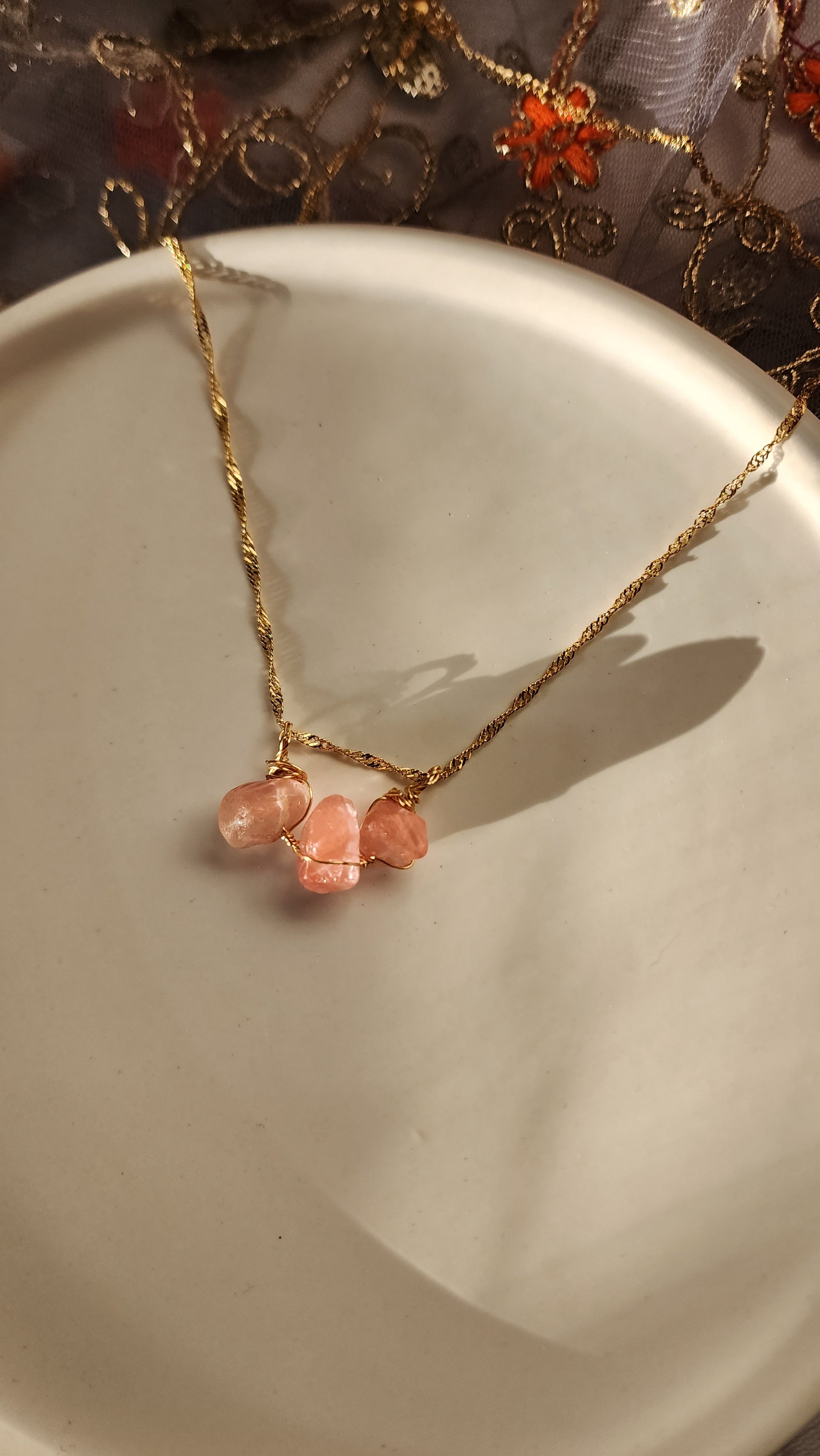 Raw amethyst stone wire wrapped necklace. 18K gold plated chain.